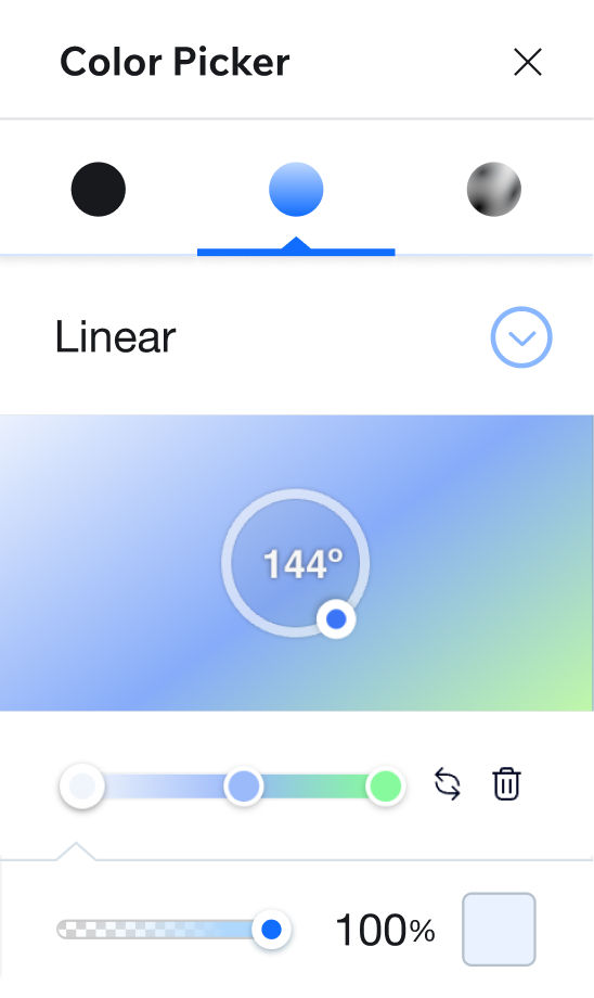 Design custom linear, radial, conic and fluid gradients with unlimited color points, directly in the editor.