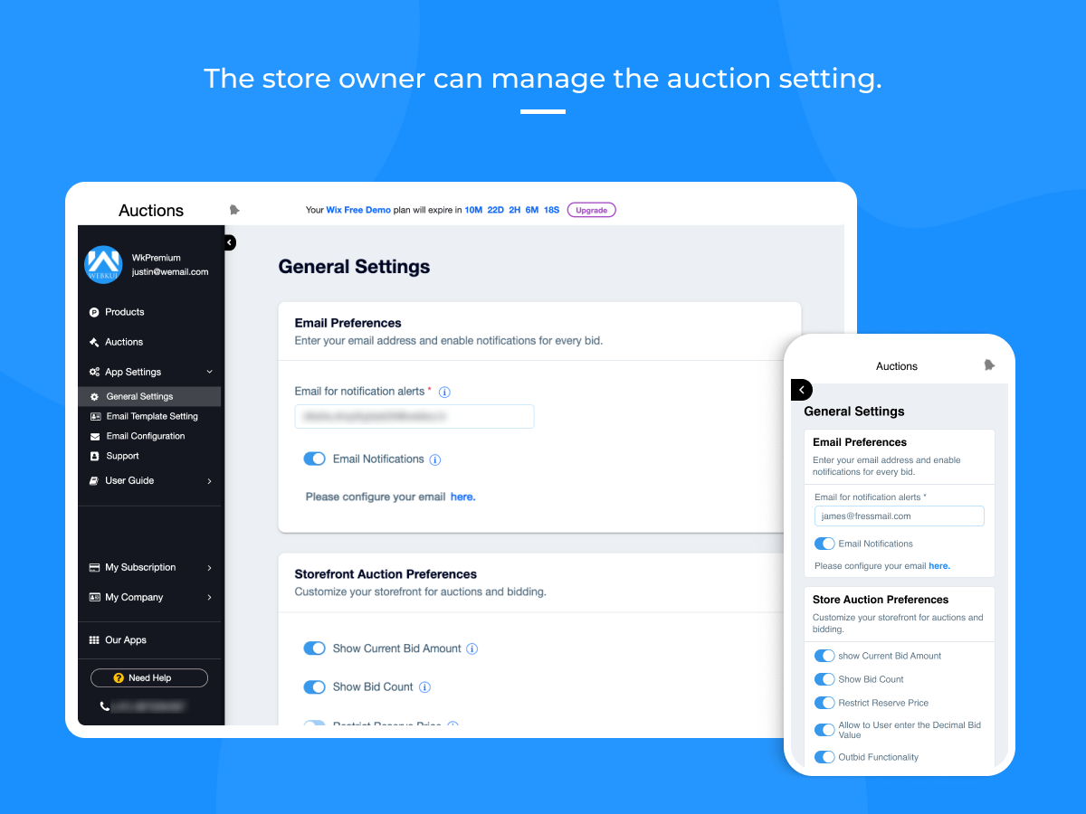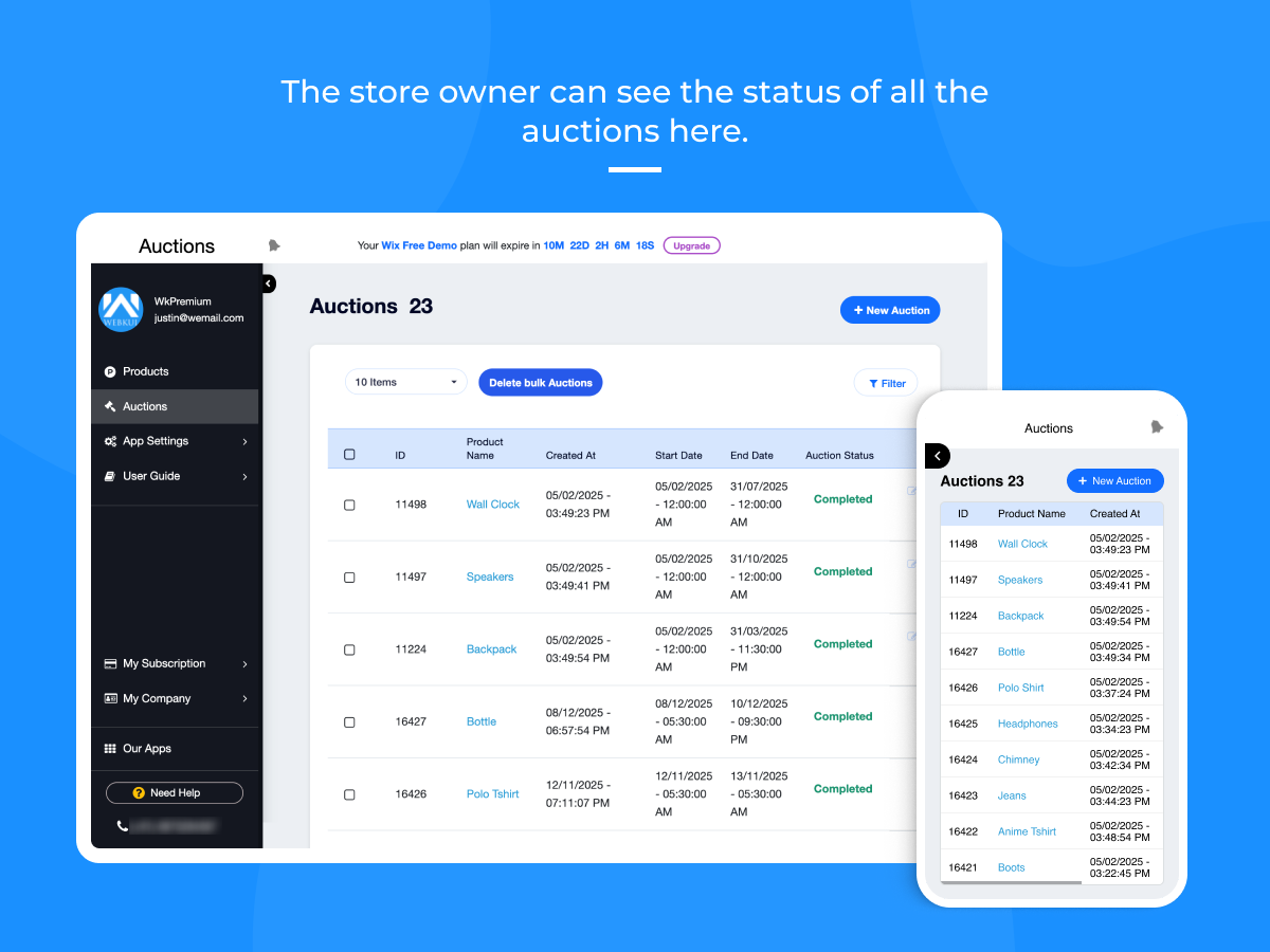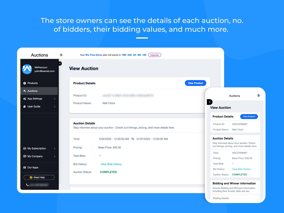 We are using the default Wix layout as much as possible to make the app easy to use and familiar. Users can sync their Wix products and apply auctions to the synced products...