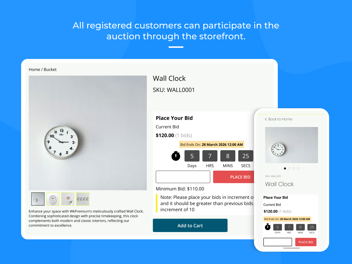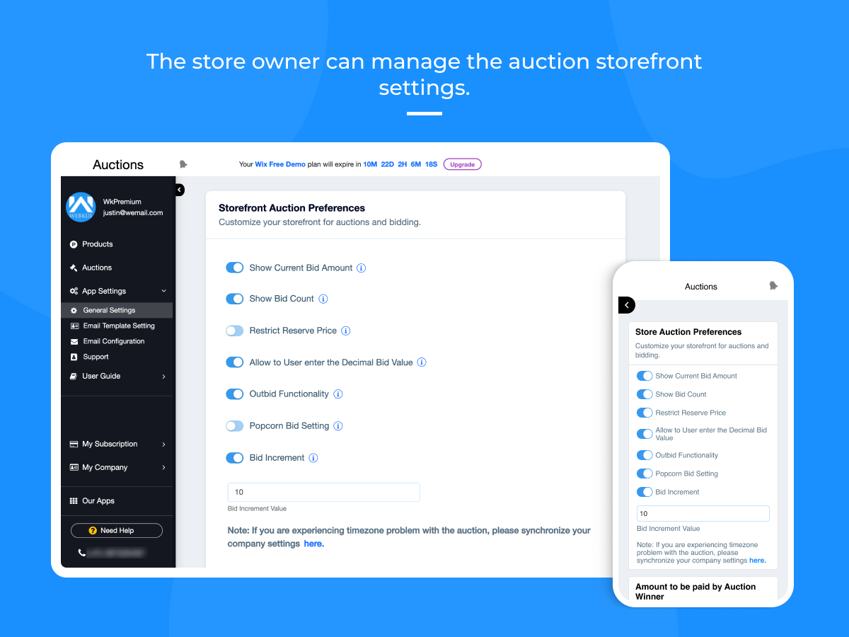 Enable Auction on any Store Products: A store admin can enable auction functionality for any product that has been synced in accordance with the subscribed plan