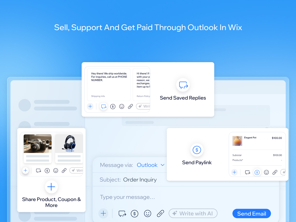 Send messages from your Outlook account and receive all replies within your Wix Inbox