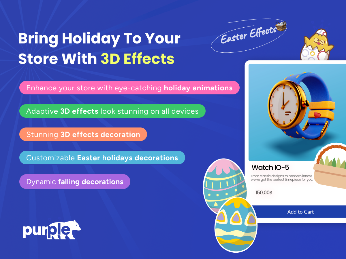 Add festive visuals like falling Easter eggs, bunny animations, and spring decorations to create a joyful experience for your visitors and boost engagement during Easter campaigns.