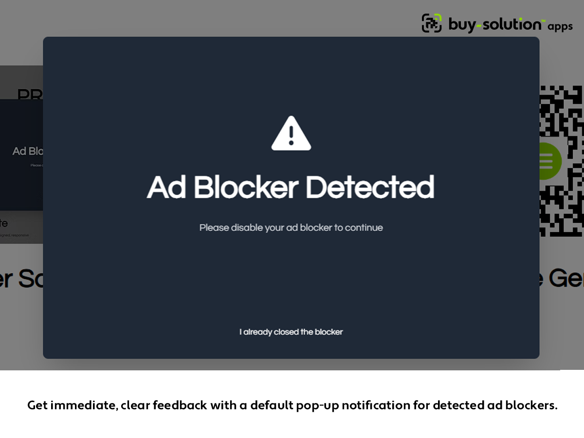 • Get immediate, clear feedback with a default pop-up notification for detected ad blockers