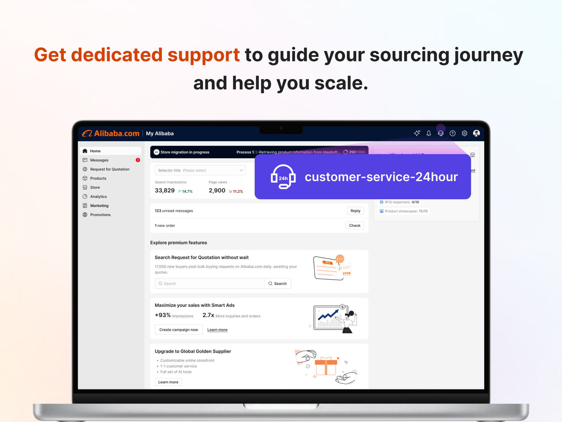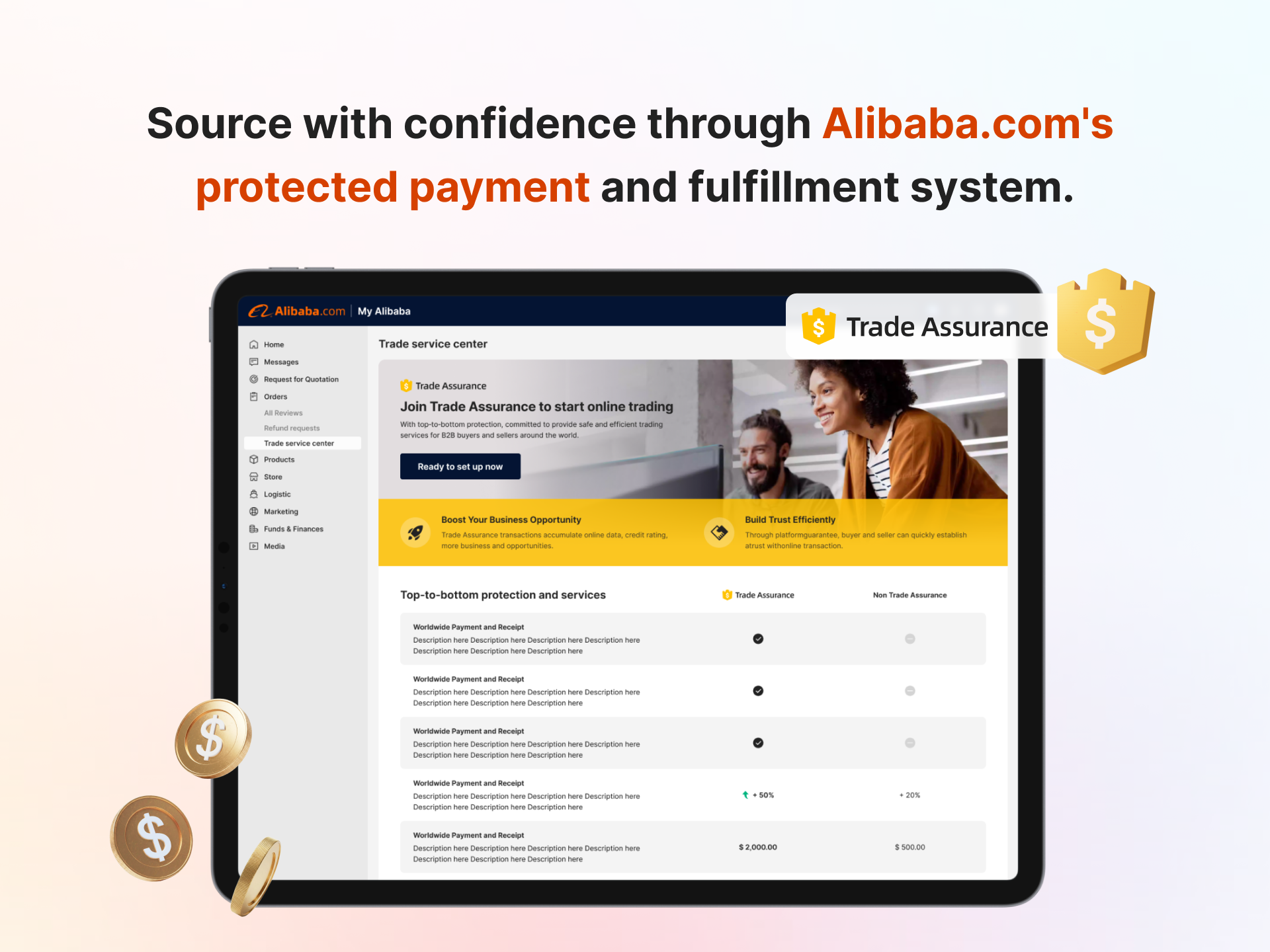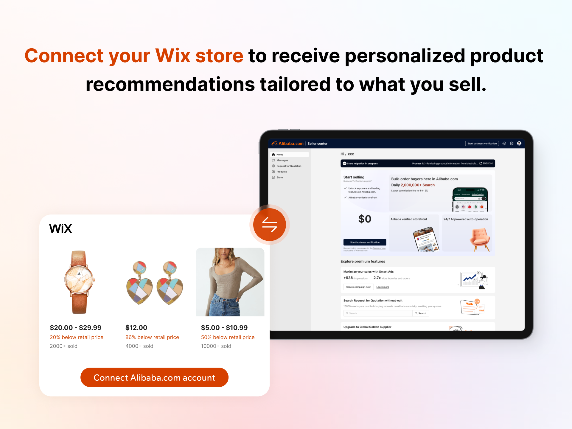 Smart Product Discovery - Connect your store and instantly receive wholesale product suggestions based on what you already sell. Our AI analyzes your catalog and sales data to surface only what's relevant—so you're not drowning in options. Find better margins, fill catalog gaps, and discover trending products without the guesswork. Effortless Import - Found something perfect? Import it to your store instantly. Product titles, images, descriptions, and pricing sync automatically—no copying, pasting, or formatting. What used to take hours now happens in seconds. Just browse, click, and it's live in your catalog. Source With Confidence - Every transaction is protected by Alibaba.com's Trade Assurance—secure payments, verified suppliers, and reliable fulfillment. Whether you're testing new products or scaling bestsellers, you're covered. Expert Support - Our team guides you through setup, supplier selection, and best practices. Get help with onboarding, troubleshooting, or scaling your catalog—whenever you need it.