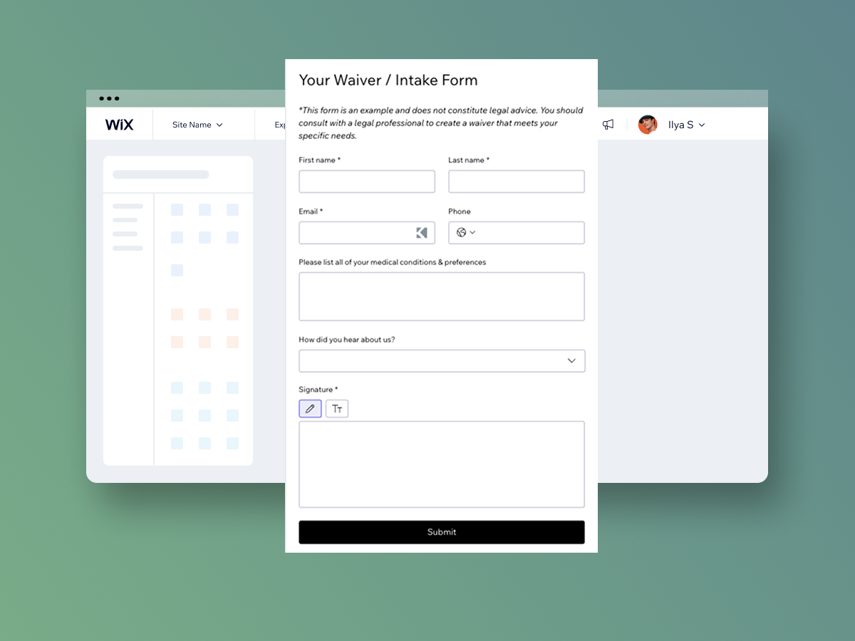 Stay compliant, save time, and get the information you need from clients - all while keeping your bookings running smoothly with Wix Intake Forms. Collect anything from parent consent to liability waivers or gym health forms.