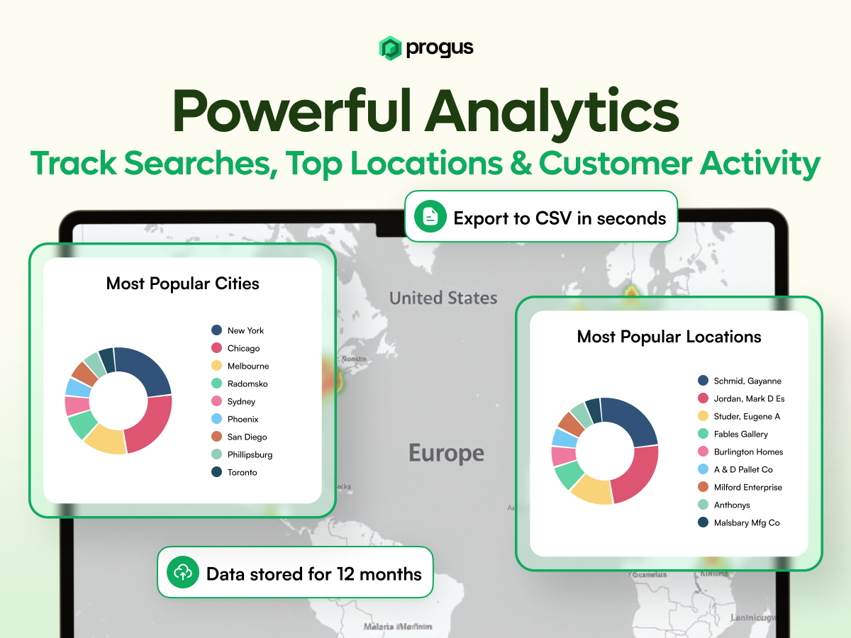 Our store locator solution makes it easy for customers to find your physical locations. With its user-friendly design and search functionality, our tool can help increase in-store sales and reduce customer support inquiries. It's a great way to showcase your stores, retailers, and dealers to the world. Additionally, our advanced analytics provide valuable insights into where customers are looking for your products, allowing you to better understand their needs and preferences. Try it today.