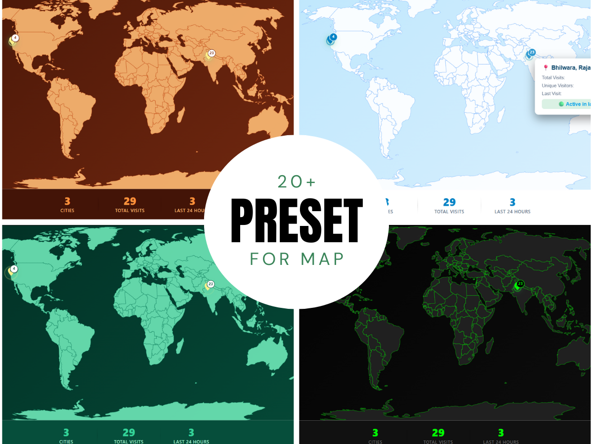 Building trust among your website visitors is a daunting task. It takes a lot of effort and time to build trust with the new visitors. The website visitor maps and globes can help you make this complex work easier. This app shows all your website visitors on a World Map, Globe, or both. The design of the maps and globe are gorgeous and fully customizable. It also has a realistic earth to show the your website visitors as markers, which not only adds a beautiful visual element to your website but also makes the visitors want to interact with website and decrease the bounce rate. To help you make the proper customization, we have added lots of cool presets for each app. The app also makes sure to prioritize the user privacy and comply with the legality of tracking user data. All the tracking data is saved in your website's CMS collection, no data is sent outside. Furthermore, you can clear the user data at any time. The app also has a dedicated tracker widget with settings to control the number of CMS items you want to use. You can collect as many as 3000 CMS items and show upto 500 Markers on the map.