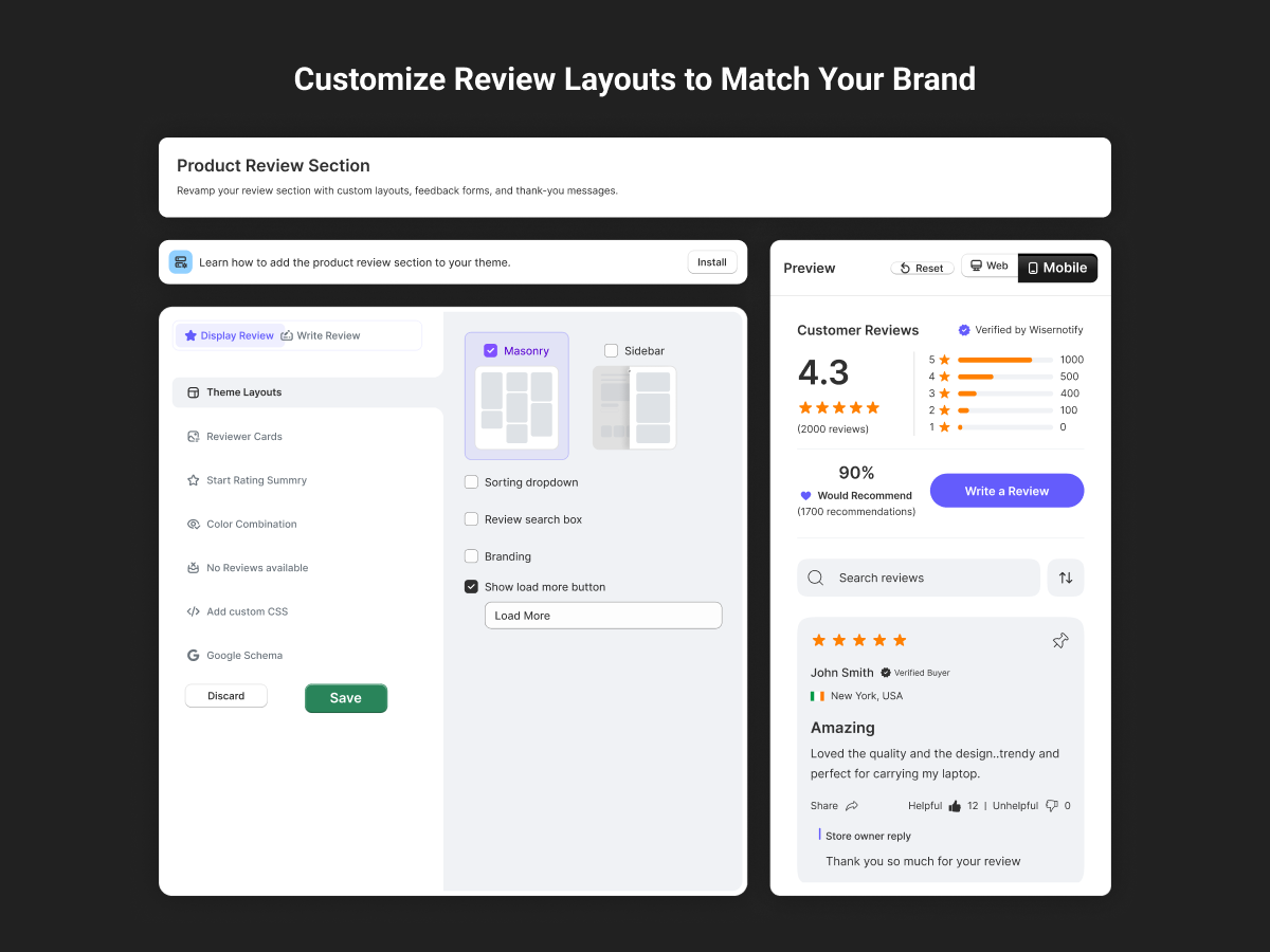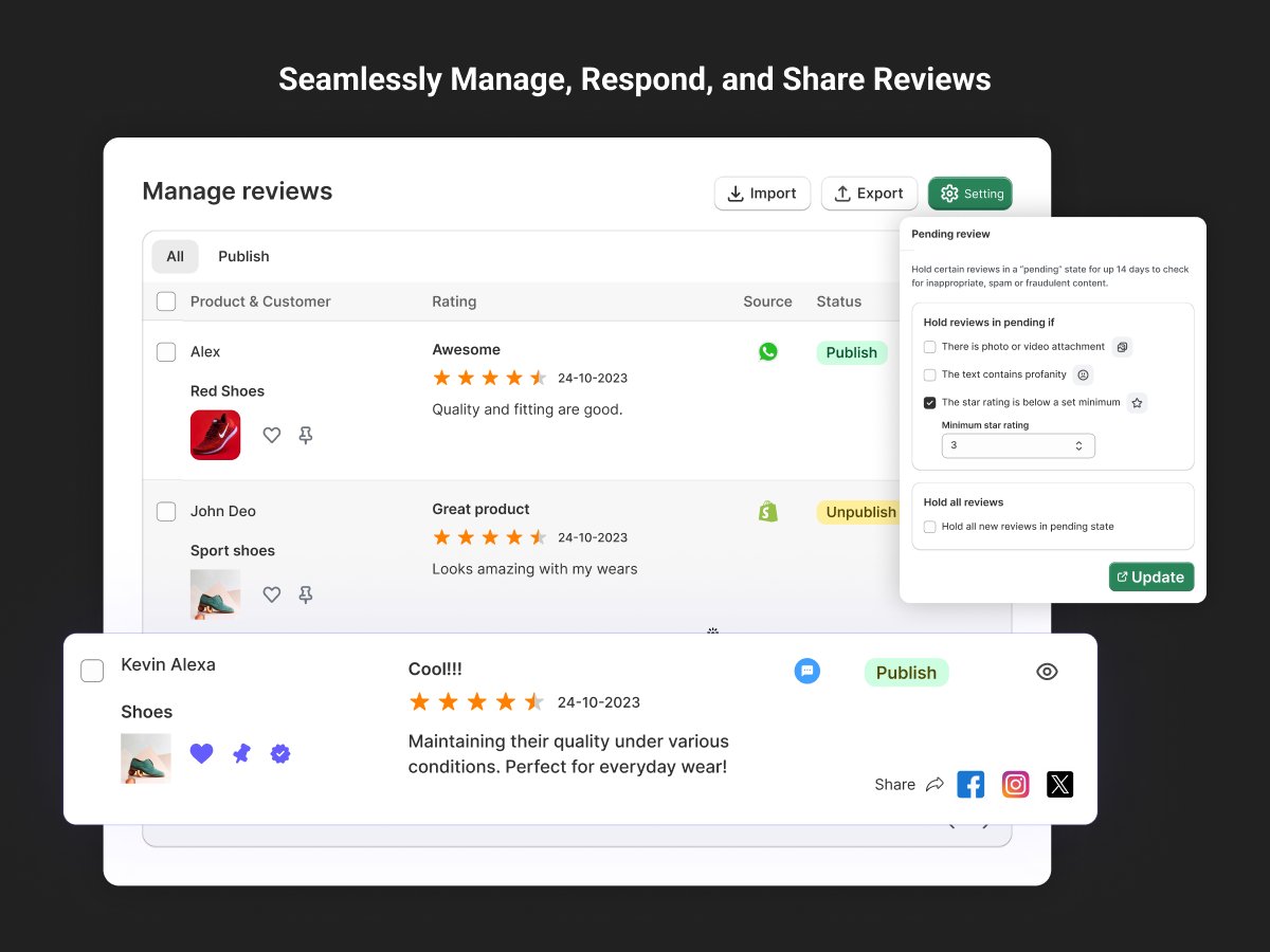 Showcase customer trust with ratings and reviews. Boost sales with authentic UGC content
