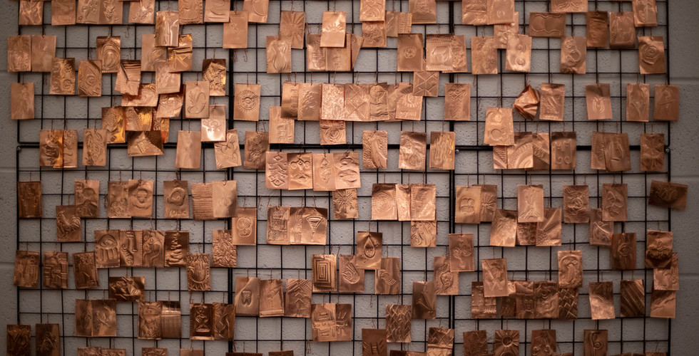 In Practice, Alexandra Zsigmond's hanging hand-drawn pieces, Installation View.
