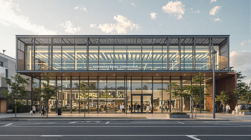 A commercial retail center designed for energy efficiency and ecological harmony. Key features include rainwater collection systems, energy-efficient lighting, and renewable material usage, offering a sustainable shopping experience for visitors.