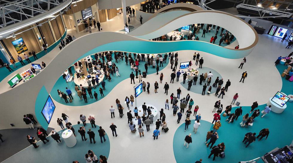A trade show booth designed for a technology company launching a new product. The booth featured a clean, functional layout with cutting-edge displays, interactive demos, and bold brand visuals to attract and engage the target audience while emphasizing the company's innovative spirit.