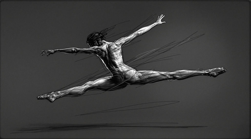 A dynamic figure drawing that emphasizes movement and fluidity. This piece uses expressive lines and detailed shading to convey the energy and elegance of a dancer in motion, highlighting the artist's ability to breathe life into their subjects.