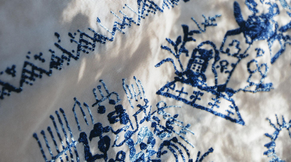 A collection of embroidered artworks that narrate personal and cultural stories through intricate stitching techniques. These pieces combine traditional embroidery with modern design elements, blending legacy and innovation.
