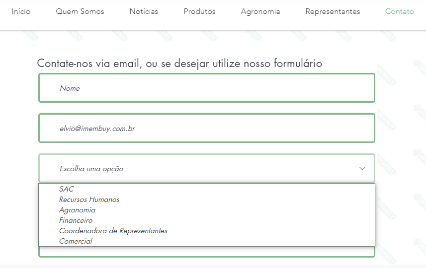 Por exemplo: No site há um formulário de contato onde o cliente digita o seu nome, email, a mensagem, e há ainda um dropdown onde ele escolhe o setor que gostaria de contatar.